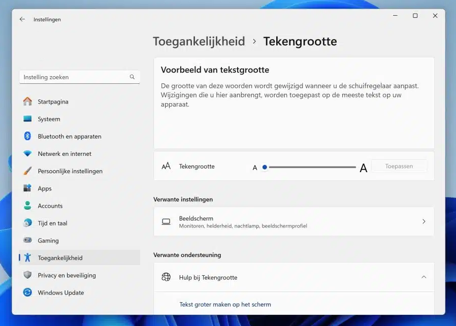 Hoe pas je de tekstgrootte aan in Windows 11?